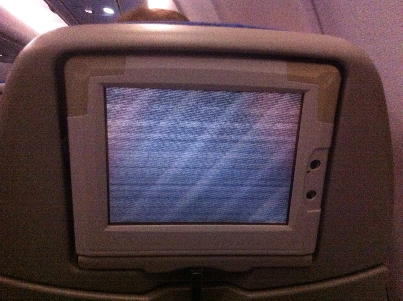 Un membro dell’equipaggio ha provato a “resettarlo”, ma senza successo. Inoltre il bracciolo centrale si reclinava solo di 45° (!!!) rendendo praticamente impossibile sedersi più comodamente. E per fortuna che l’aereo di andata non aveva questi accessori.